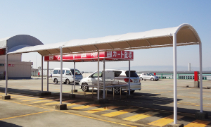 - 悪天候でも傘が不要です。お客様の足下の快適さと、安心・安全に役立ちます。